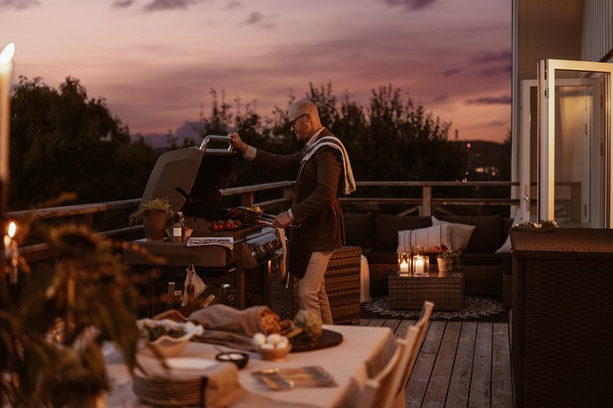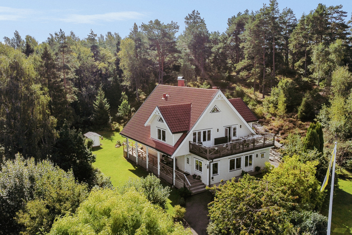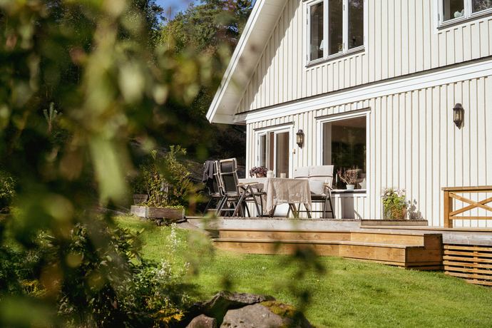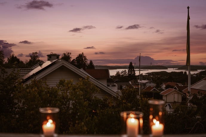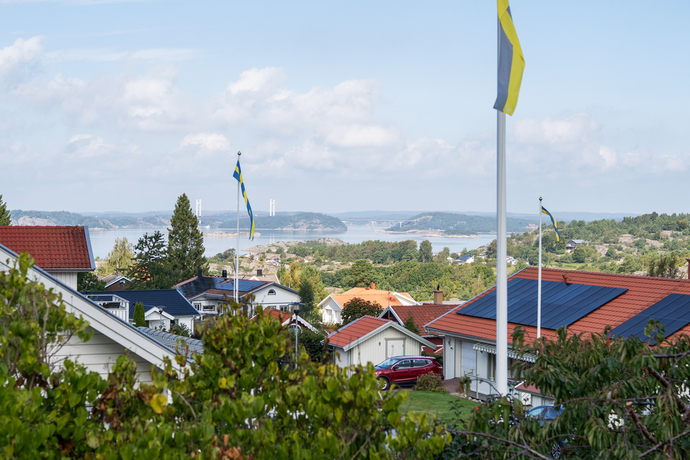 På övre plan öppnar sig en stor terrass med plats för hela familjen och lite till. Här njuter du av de vidsträckta vyerna över Hakefjorden och Tjörnbron, en utsikt som aldrig slutar imponera. Här utlovas fantastiska solnedgångar kan vi lova!