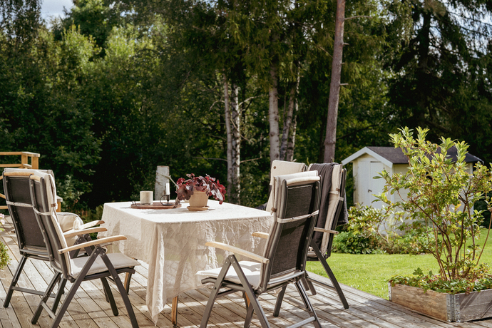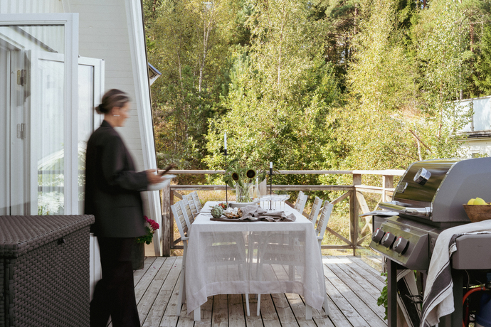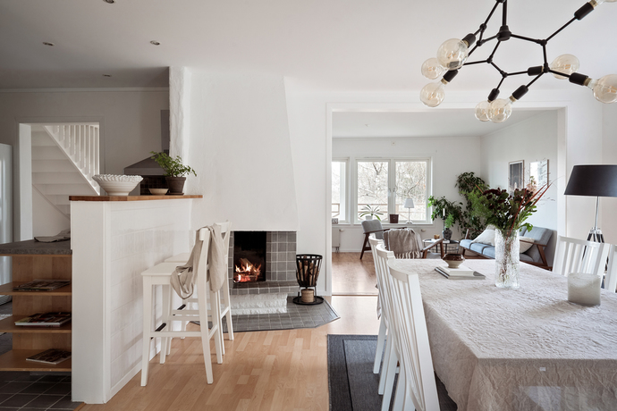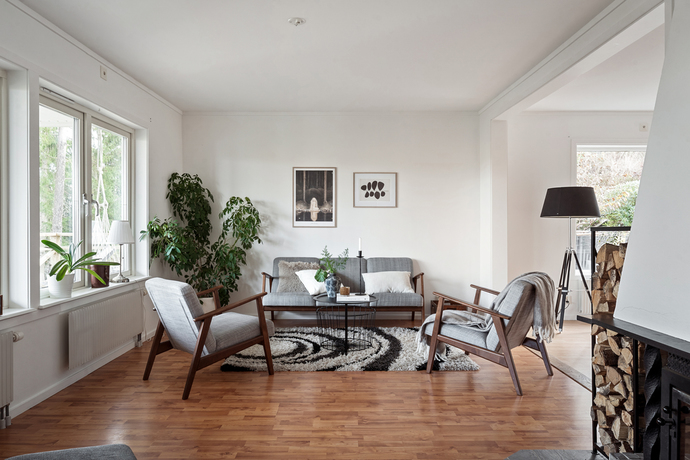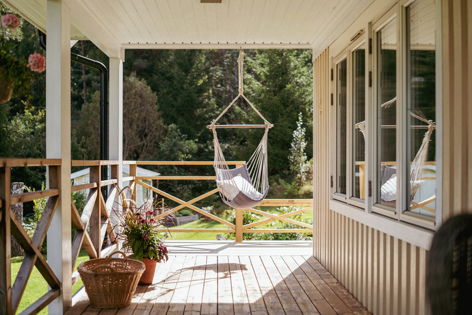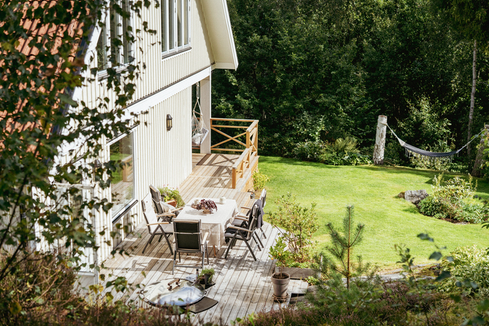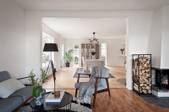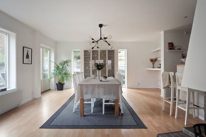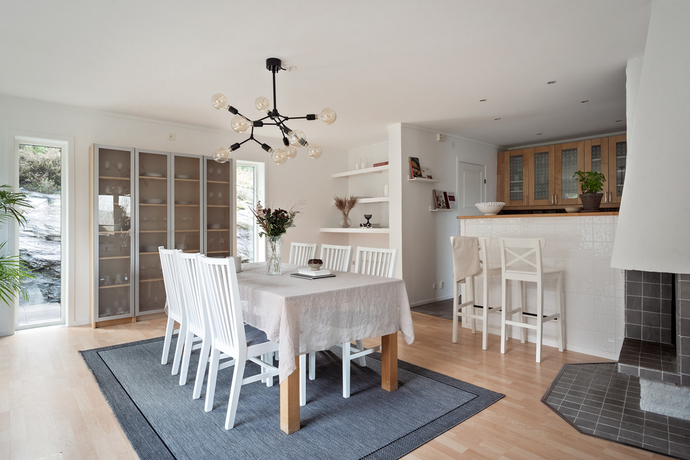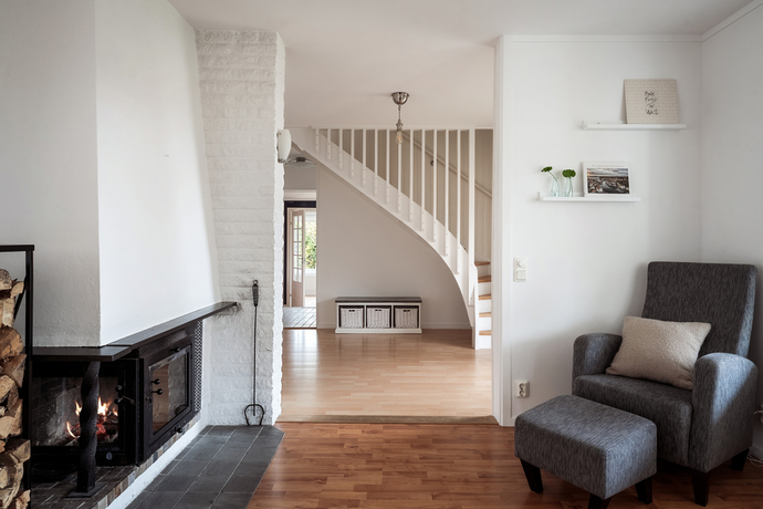 Huset bjuder på hela 262 kvm och sju rum och kök , gott om plats för den stora familjen och för att samla släkt och vänner. Den amerikanska verandan är hjärtat på sommaren, en plats för gemenskap där kaffekoppar och glasskålar samsas med skratt och mys. När hösten kommer tänds de två öppna spisarna och ger både värme och stämning till kvällarna.