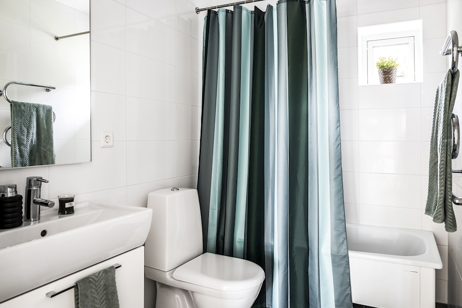 Badkar, WC, handdukstork, kommod & spegel ovan