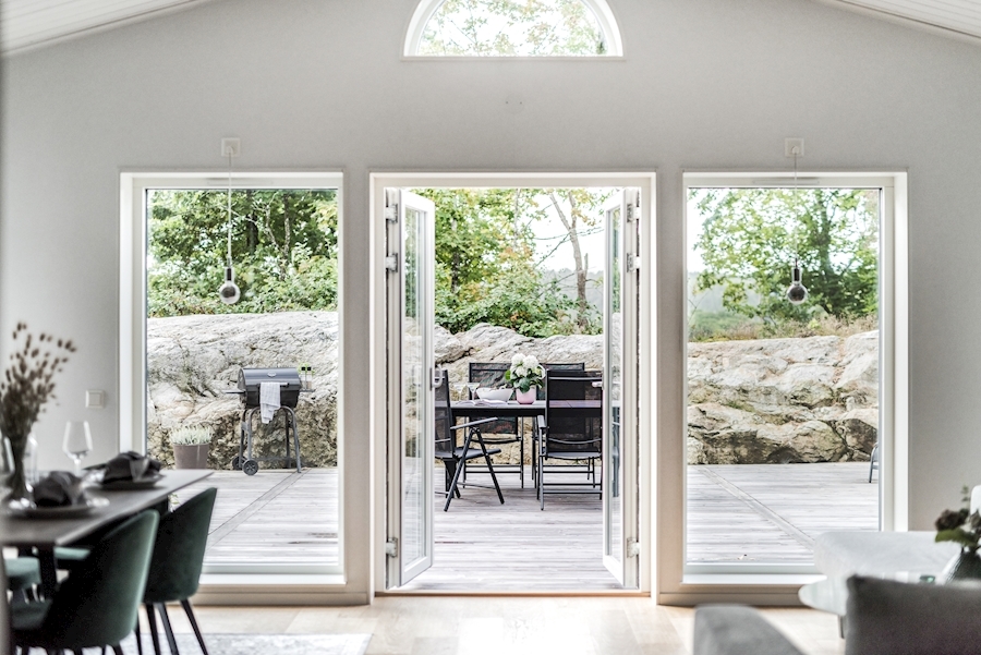 Dubbeldörrar ut till insynsskyddad altan