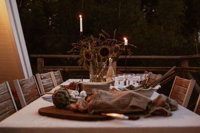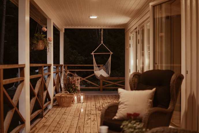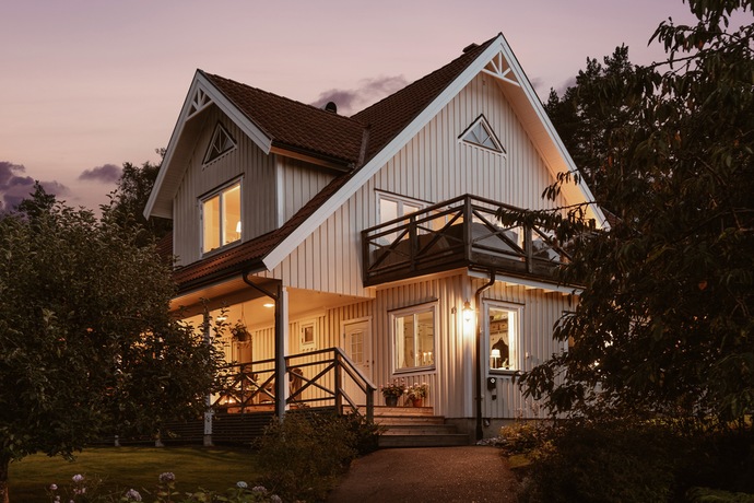 Huset bjuder på hela 262 kvm och sju rum och kök , gott om plats för den stora familjen och för att samla släkt och vänner. Den amerikanska verandan är hjärtat på sommaren, en plats för gemenskap där kaffekoppar och glasskålar samsas med skratt och mys. När hösten kommer tänds de två öppna spisarna och ger både värme och stämning till kvällarna.
